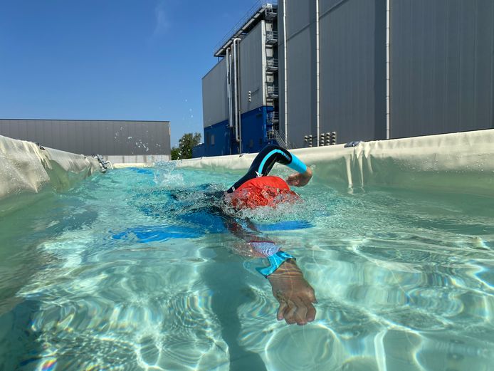 Geen Zwembad Om Baantjes In Te Trekken Fervent Zwemmer Legt Eigen Zwemstraat Aan Met Staal En Zeildoeken Ieper Hln Be